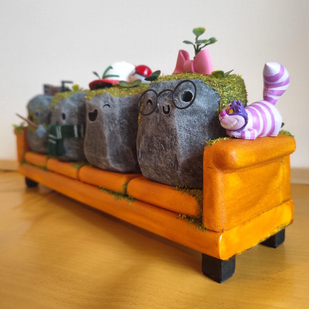 Projet sur mesure inspiré de différents univers (pokemon, retour vers le futur, Alice au pays des merveilles, harry potter) avec une base canapé inspiré de Friends